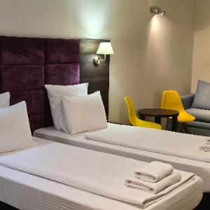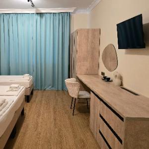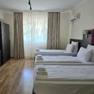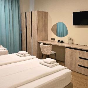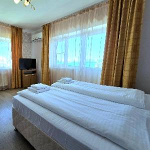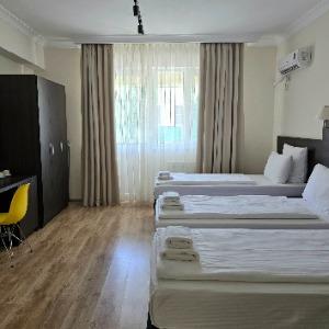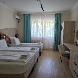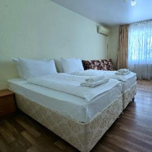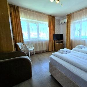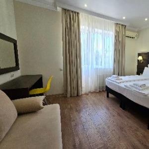 The hotel is located in the center of the resort area, on the famous tourist Pionersky Avenue in the Dzhemete district. The sea with a sandy beach is a 10-minute walk away. The hotel is 500 m from the sea. Free WI-FI is provided on site. The hotel has 60 cozy rooms from standard to superior suite. The rooms are equipped with everything necessary for a comfortable stay. In the courtyard there is a heated summer pool with a children's bowl, a small playground. Also on site there is a sauna with a pool, a gym, table tennis. We work all year round.