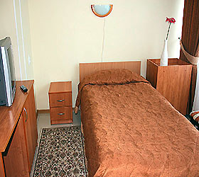 The Salut Hotel offers accommodation in 21 comfortable and cozy rooms of various categories with panoramic view of the city. A Standard room includes - air conditioning, cable TV, fridge, safe box, Wi-Fi Internet access, and bathroom with a tub and a shower.