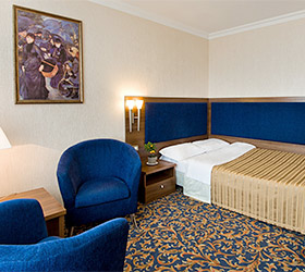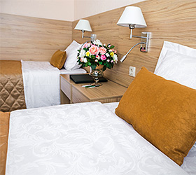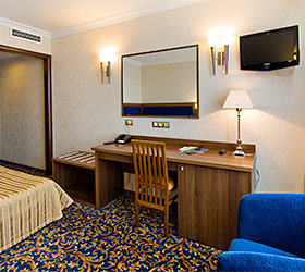 The Malakhit Hotel has 400 rooms of various categories, including Standard, Junior Suite and Suite. Standard classic rooms have: television, telephone, Wi-Fi Internet access, general air conditioning system, bathroom. Superior rooms have a personal safe and split system.