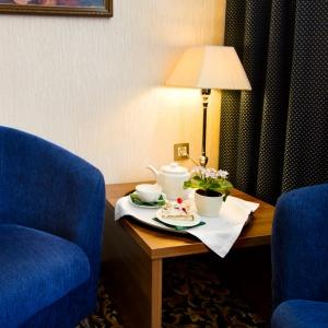 The hotel has a restaurant Gzhel, offering Russian cuisine, a lobby bar, and a buffet, which is open until 2 am on the 5th floor.