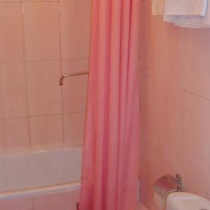 wardrobe, TV, coffee table, electric tea pot; in the bathroom - bathtub,
