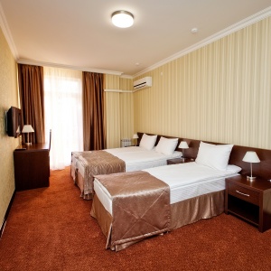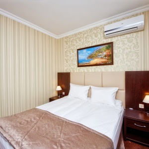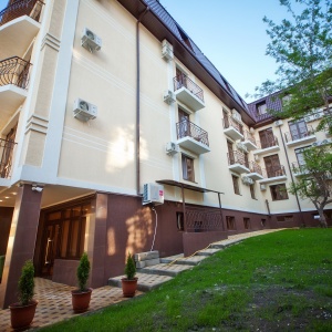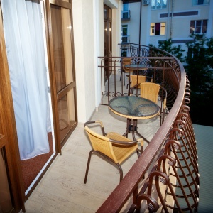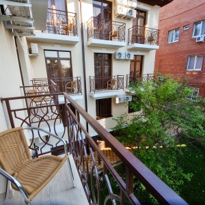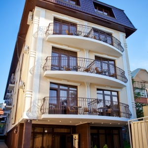 The hotel is located in one of the best areas of the resort city, “Thick Cape”, just 8 minutes walk from the promenade and the sea. At 100 meters from the hotel there is a public transport stop, from where you can easily get to any part of the city. Walking distance to supermarket, food market, canteen, pharmacy, Sberbank, post office, many shops. The nearest water park "Dolphin" at a distance of 750 meters.