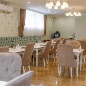 The hotel has four floors, an elevator and a cafe with restaurant service.