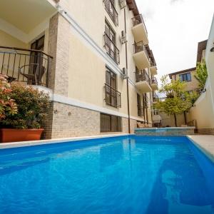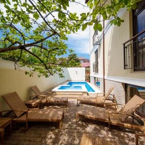 For hotel guests, a warm swimming pool on the territory of the hotel and sunbathing on sun loungers near it will be a pleasant surprise.