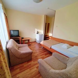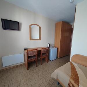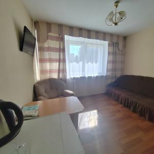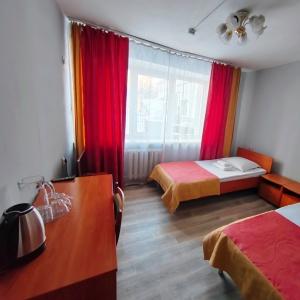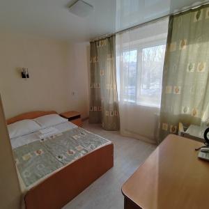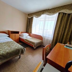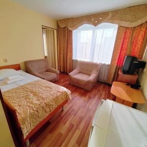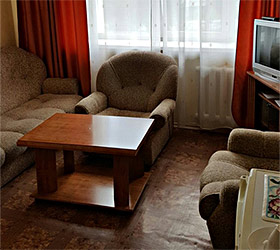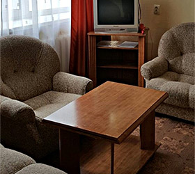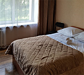 The hotel offers 45 rooms of different categories. All rooms feature comfortable furniture, TV, telephone, refrigerator; at "Junior" and higher there are two rooms - a bedroom and a living room with a workstation; at the apartment - three rooms: a bedroom, a living room and an office.