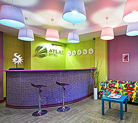 The Atlas hotel was built in 2013. Modern interior, cozy atmosphere and attentive staff make a pleasure stay at the hotel. The Atlas hotel is located near the central streets of the city and the airport. In 2-5 minutes walk from the hotel there are hairdresser, ATMs, supermarkets, children's activity room, children's clothing stores, fitness clubs, dental offices, entertainment and health complex, kindergartens, sports clubs, furniture stores, pool halls, school of foreign languages, beer bars, pizzeria, diagnostic centre, "Barguzin" cinema.