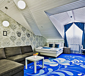 The Kupetsky Dvor 4* Hotel in Irkutsk is a unique historical reconstruction that recreates the spirit of an old Siberian manor, which was owned by N.D. Krasilnikov, an Irkutsk lawyer and private attorney. The hotel is located in the historical center of Irkutsk, in the 130th quarter. Within walking distance are the Music and Drama Theaters, a large shopping complex with a wide selection of goods, and numerous cafes and restaurants. The small number of rooms, with a total of 14 rooms, allows for maximum attention to each guest, and there is no room for noise or hustle and bustle. The hotel's interior is designed in the style of a classic wooden manor, where traditional aesthetics are harmoniously combined with modern amenities.