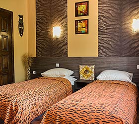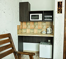 Отель насчитывает 6 номеров различных категорий. Все номера отличаются повышенной звукоизоляцией, круглосуточным обслуживанием. В каждом номере телевизор, беспроводной доступ в Интернет, электрочайник, микроволновая печь, комплект столовой посуды, чай. Каждый номер имеет собственную ванную комнату оборудованную душем, фен, тапочки.