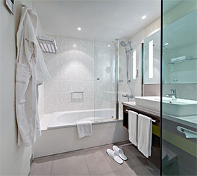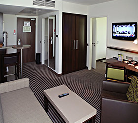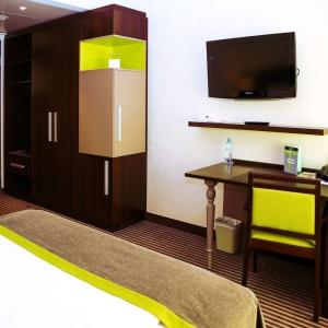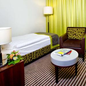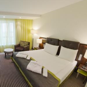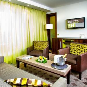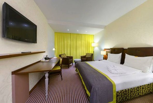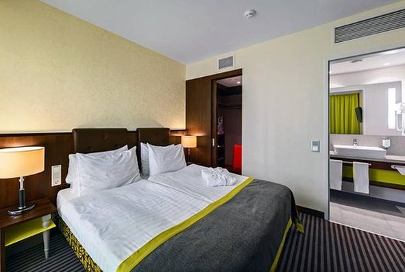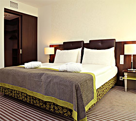 The Ambassador Hotel Kaluga combines Hotel with 136 rooms and suites, and a Boarding House with 74 comfortable long stay apartments. Tastefully decorated single and double rooms are modern and comfortably furnished. Suites have separate living and sleeping areas, bathrooms with showers, bathtubs for two people, separate WC and bidet. All rooms are equipped with climate-control, phone, LCD TV, LAN Internet connection, safe, mini-bar, bathroom with additional make up mirror, bath tub or shower and toilet. Apartments in Boarding House are additionally equipped with kitchenette, extraction system, dishwasher, utility sink, cooking plate and refrigerator.