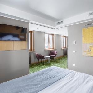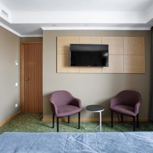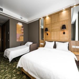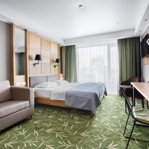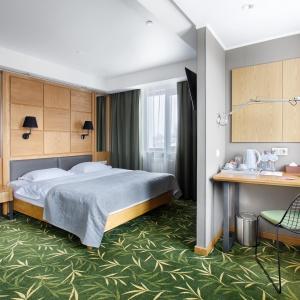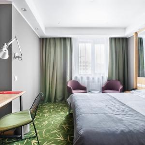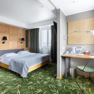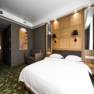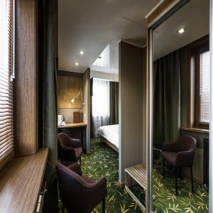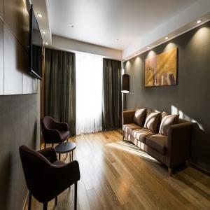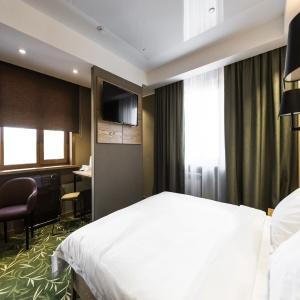 Guests of the hotel are welcome to choose from 97 rooms of various categories. In each room has an individual climate control system, LCD TV-set with satellite channels, Wi-Fi, safe, minibar, bathroom with "rain" shower, hair dryer, bathrobe, slippers, toiletries. Extra amenities and services are offered in superior rooms.