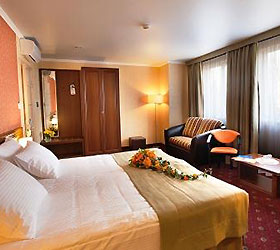 56 rooms of different categories are available for guests, each provides excellent conditions for relaxation. Rooms are equipped with comfortable beds, air conditioning, satellite TV, telephone, electronic room access, safes, mini-bars, hairdryers, bathrobes, bath amenities. Some of the rooms reserved for non-smoking guests.