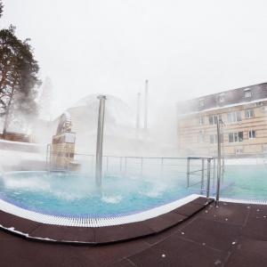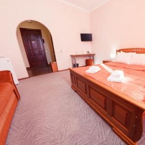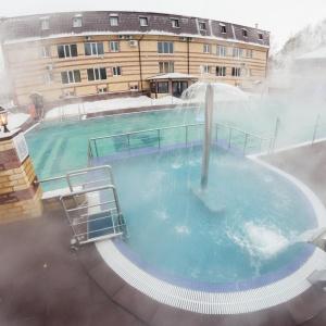 The hotel offers 57 rooms of various categories. The hotel complex has 2 buildings. In the 1st building there are banquet halls, a children's room, a conference room. In the 2nd building there is a thermal pool with hydromassage installations, a sauna complex, barbecue areas, a SPA, a cafe, a children's indoor pool.
