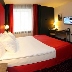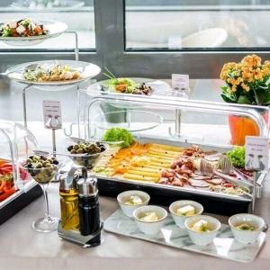Guests are served breakfast in the morning. Hotel premises include the Palermo restaurant and the Sokol banquette hall. The whole hotel territory has Wi-Fi Internet coverage. The hotel has a secured parking lot. A gym with professional sports equipment is also at the guests' disposal.