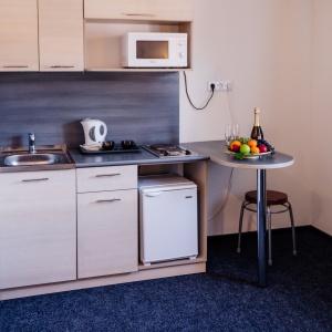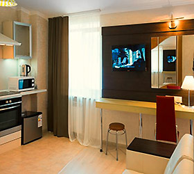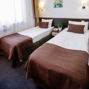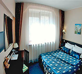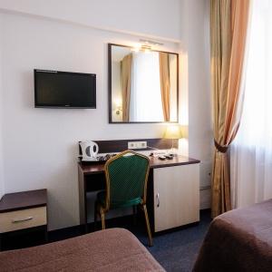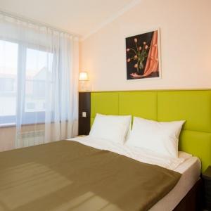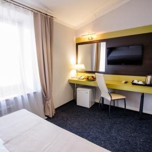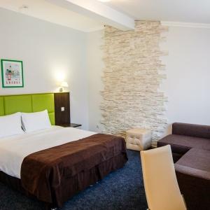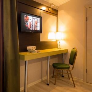 Accommodation is available in 22 rooms of various categories, complete with everything needed for work and leisure. Each room has a double-bed or two separate beds, desk, mini bar, electric kettle and tea set, safe box, LCD TV with cable channels, air conditioning, Wi-Fi Internet access, and telephone. The bathroom comes fitted with shower cubicle, necessary toiletries, and hair-dryer. Other items include a terry robe and slippers. If necessary, guests can make use of a first-aid kit, sewing kit, tableware, umbrella, microwave oven, and iron.