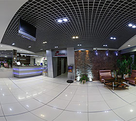 Business hotel "Cosmos" is a modern hotel complex in the MICE style, which is located 100 meters from the airport, 10 minutes from the city center and 15 minutes from the railway station.