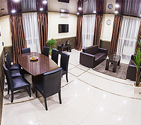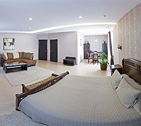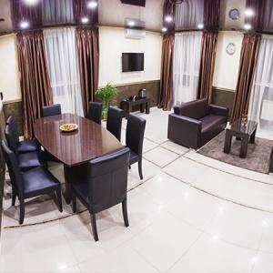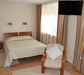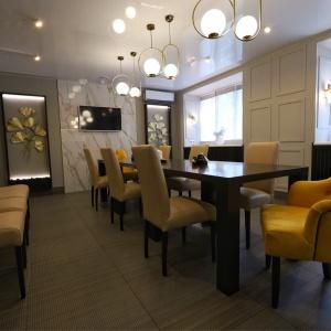 The hotel restaurant offers a choice of 4 halls: the main hall for 25 persons, a small hall for 16 persons, a VIP hall for up to 14 persons and a banquet hall for up to 60 persons. Buffet breakfasts are held in the main hall in the morning.