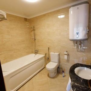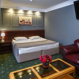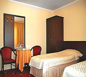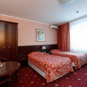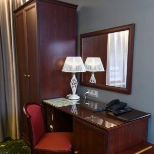 Accommodation is available in rooms of Standard, Junior Suite, and Suite categories. A Standard room includes - 2 separate beds, 2 bedside tables, desk, chair, coffee table, armchair, baggage stand, mirror, clothes hanger, wardrobe, cable TV, Wi-Fi Internet access, and mini bar. The bathroom has shower cubicle, hair-dryer, mini set of toiletries, and slippers.