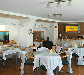 On the first floor there is a cozy cafe where guests can eat and spend time in a pleasant atmosphere.