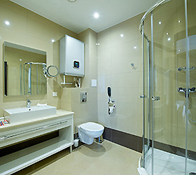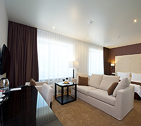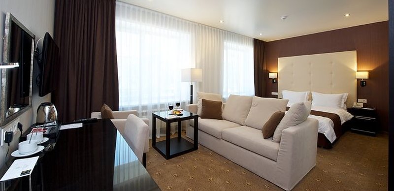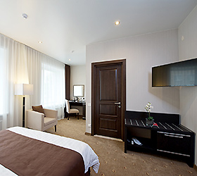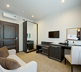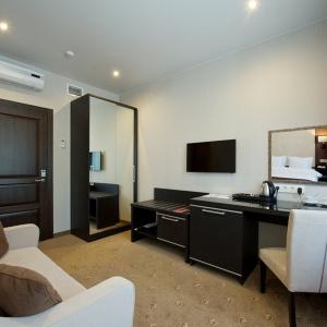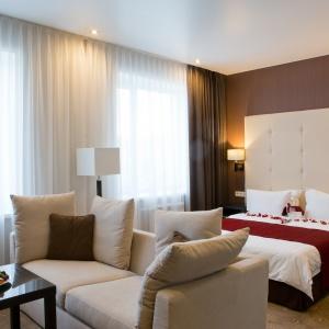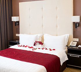 The hotel has 48 rooms of the following categories: Business Class, Deluxe and Suite, Comfort Suite, Gentleman Suite, and Wedding Suite. Each room is equipped with the necessary furniture, a plasma TV with cable TV, Wi-Fi Internet access, a code safe, air conditioning, a hairdryer, toiletries, an electric kettle with tea and coffee making facilities, a minibar, and a desk.