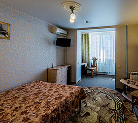 The rooms of the hotel "London-Paris" are represented by single and double standard rooms, as well as rooms of the category "Junior Suite". The hotel rooms have everything you need for a comfortable stay: a bathroom, a loggia, an air-conditioning system, an LCD TV, a telephone, a refrigerator, Wi-Fi Internet access reaches 200 Mbps.