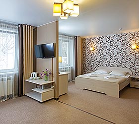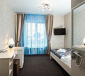 The hotel provides accommodation in 16 comfortable Single and Double rooms of various categories. Each room is complete with comfortable furniture, modern TVs with cable channels, Wi-Fi Internet access, fridge, modern bathroom fitment, and shower cubicle with personal toiletries. Guests travelling by car can make use of the hotel's parking lot.