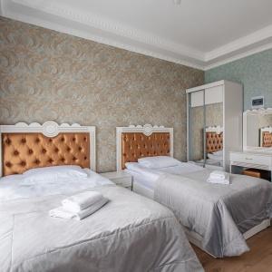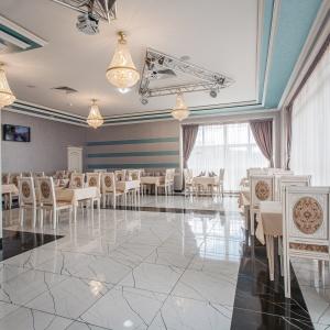 The hotel has 16 rooms of various categories, from standard rooms to comfortable suites in calm colors. The rooms have everything you need for a good rest: bathroom, towels, slippers, bathrobes (in the highest category or for an extra fee), air conditioning, kettle (tea, coffee, sugar), bottled water, telephone, TV. For an additional fee, you can purchase: shaving and dental kit, bathrobes. Smoking is prohibited in all rooms of the Araz Palace Hotel Complex.