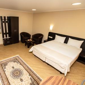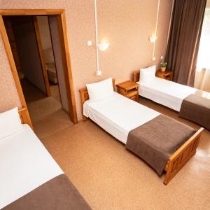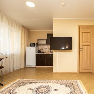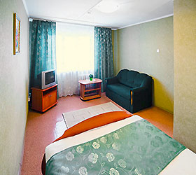 Algoritm Hotel is waiting for its guests in one of the cozy, clean, quiet and green district of Tyumen. The hotel is situated in 10 minutes from the city centre and in 15 minutes from the nearest thermal spring. The hotel will satisfy the wishes of the guests both in a multi-seat economy class and in standard accommodation. The spacious comfy rooms have everything for lovely relax and equipped with comfortable mattresses, cable TV, kitchen with electric kettle and a set of dishes, private bathroom with toiletries, free WiFi. Parking is also available. The hotel has some rooms with lake or city view balconies.