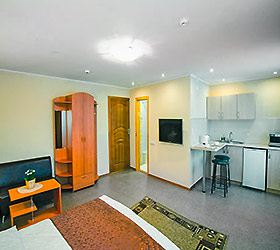 The hotel's cafe serves a continental breakfast, business lunch and in the evening guests can relax in a cozy atmosphere. At request, the staff of the cafe will gladly prepare lunch, dinner, organize a banquet or a buffet table. There are 2 banquet halls 60sq.m and 20sq.m, which can also be used as a conference room and a meeting room.
