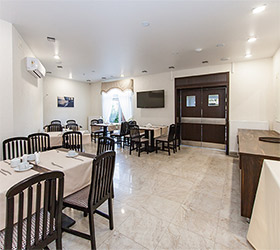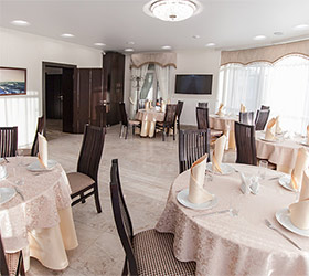 The Regatta restaurant with panoramic windows and a view of Norimanov street operates at the hotel. The restaurant is open 24 hours a day.
