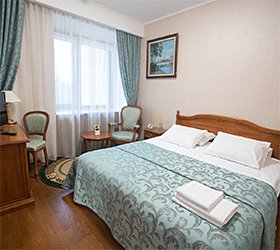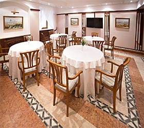 Conference hall for about 30 sq. m. operates in the Simbirsk Hotel. The hall designed for 25 people, equipped with a screen, laptop, speakers, air conditioning, flip-chart and Wi-Fi. Coffee breaks, business diners and buffet tables are available for quests of the hotel.