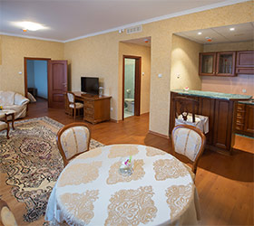 Guests of the hotel are welcome to choose from 13 rooms of various categories. All rooms are equipped with air conditioning, an LCD TV-set with satellite channels, Wi-Fi, a safe box, a mini-fridge, a bathroom with toiletries, bathrobes, slippers and hair dryers. Some rooms are equipped with jacuzzi.