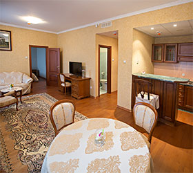 Guest services are 24-hour gym, high-speed internet access, documents printing, concierge, recreation, laundry, taxi call, reference information about the city, tickets booking for events.