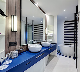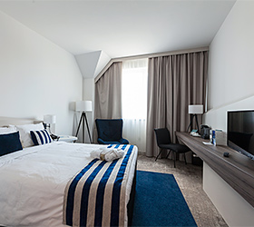 The hotel offers guests 155 rooms in various categories: Standard, Privilege, Suite, connecting rooms and rooms for guests with reduced mobility. Rooms with a marine theme feature natural materials and textures, textiles and decor to give guests a unique sense of peace, comfort and serenity. Each room includes individual temperature control, Wi-Fi, satellite TV, mini-refrigerator, tea and coffee-making facilities, safe, rain shower, toiletries and hairdryer.