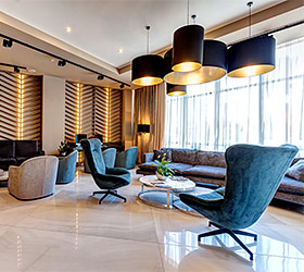 On-site dining facilities include Torro Grill steak house, Granat restaurant with Mediterranean cuisine and 24-hour lobby bar. The hotel's security service, exterior video surveillance and fire safety system ensure the guests' safety around the clock. Private vehicles can be kept for free at the hotel's parking lot.