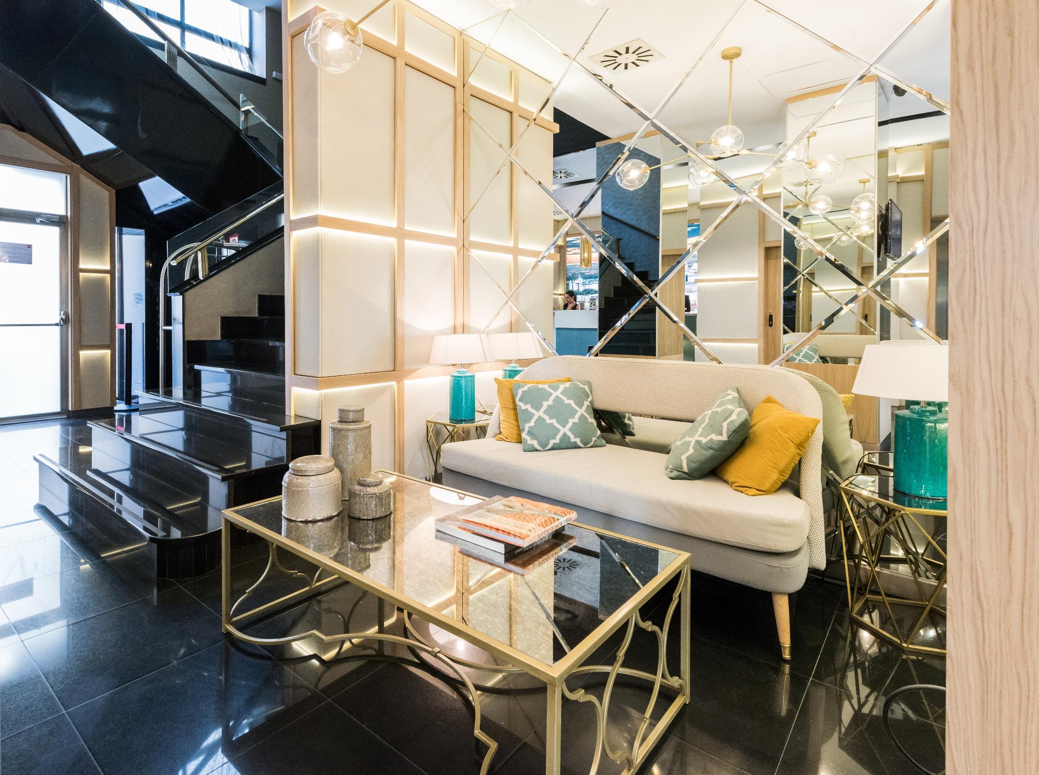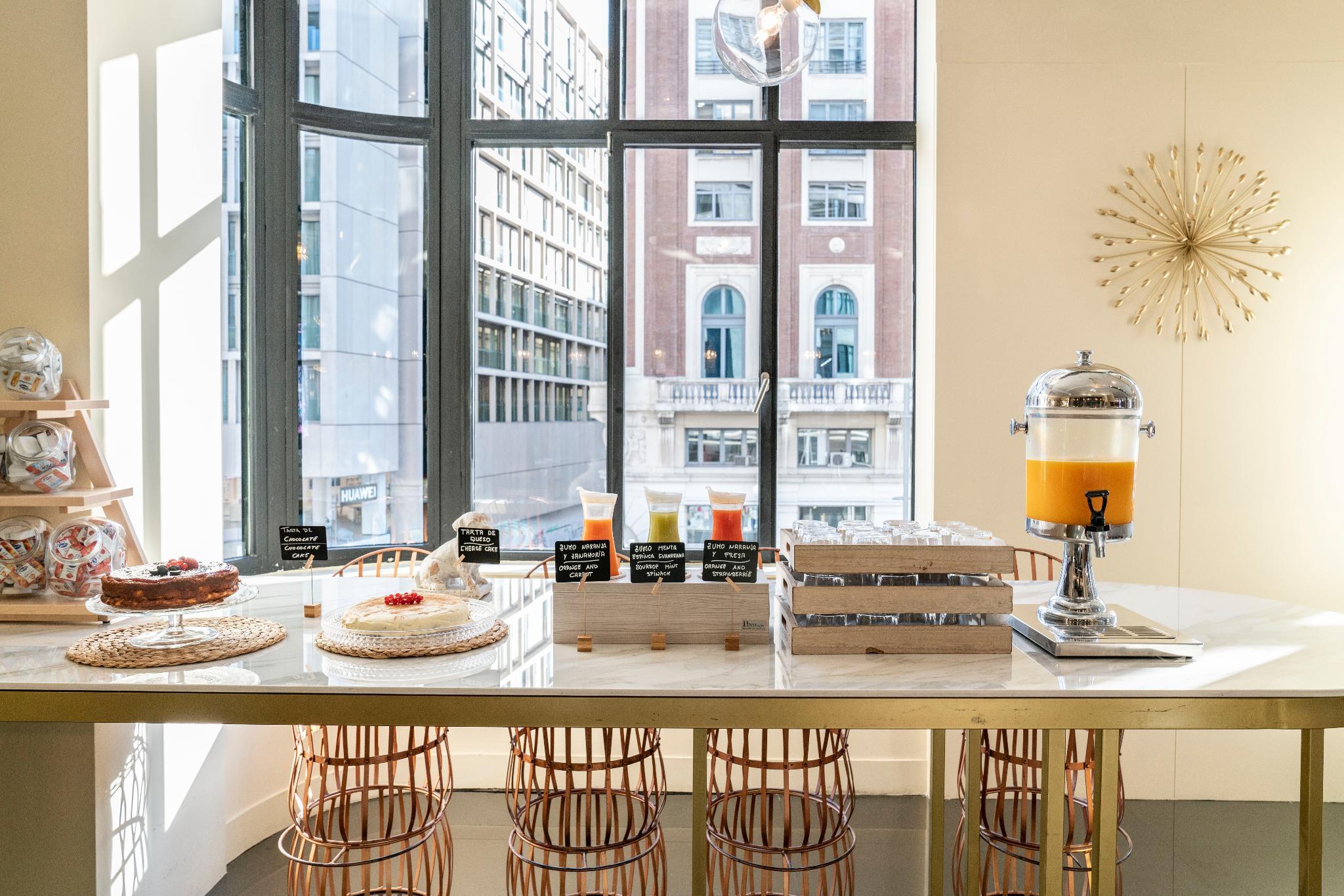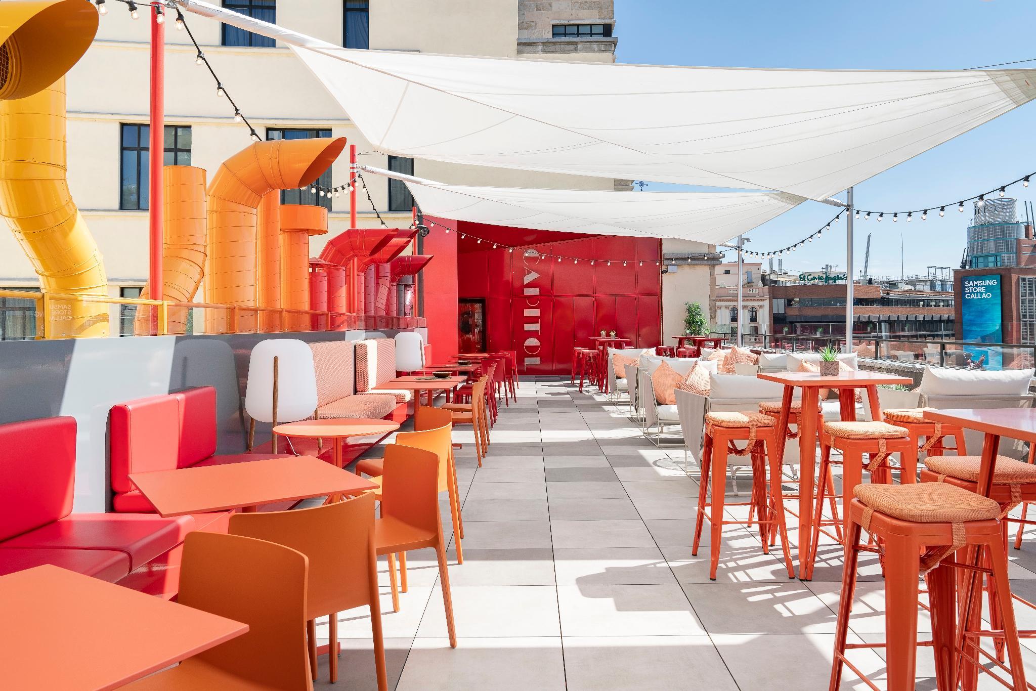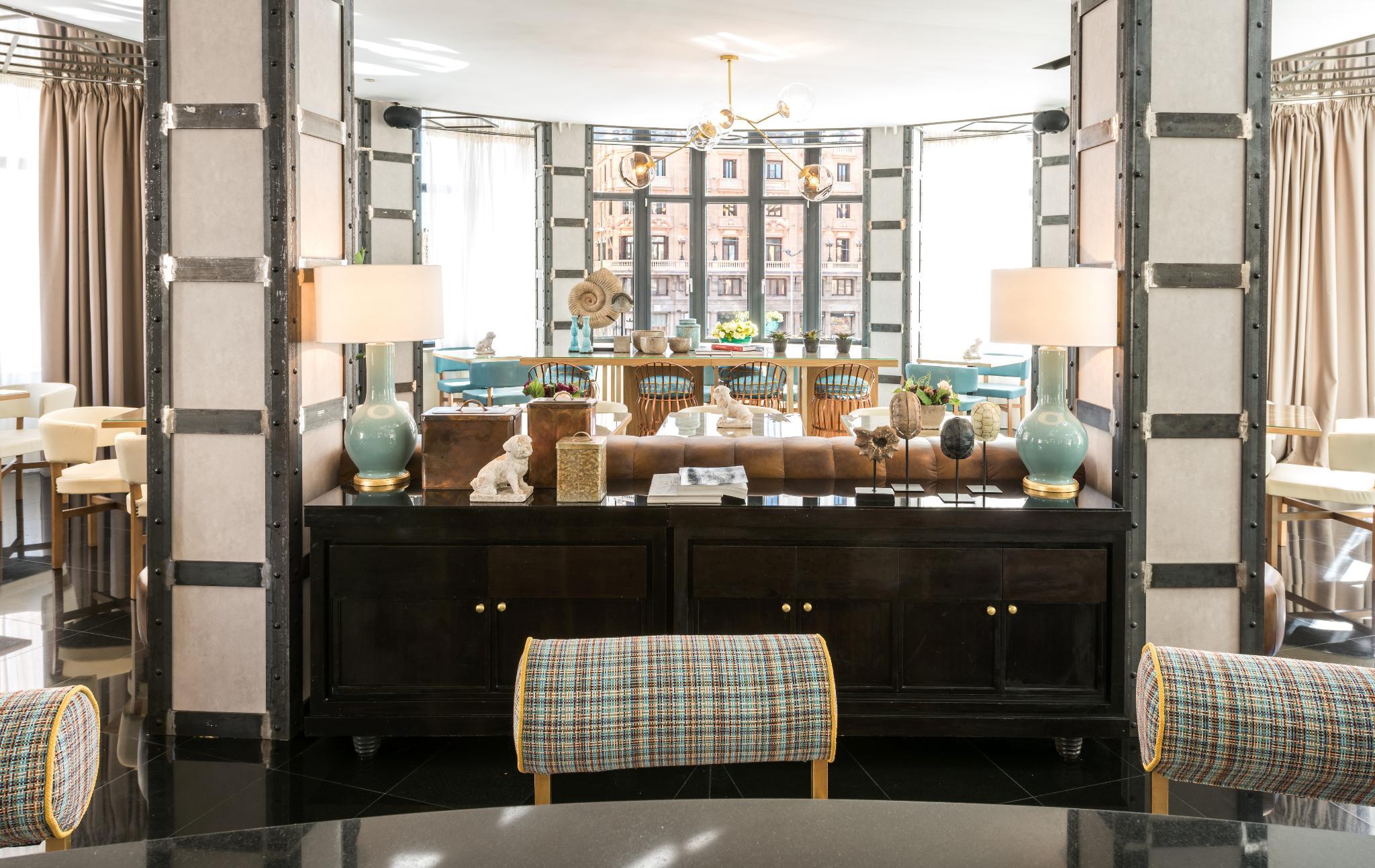 This trendy establishment is overlooking the lively Gran Via is 15.9 kilometres from Madrid airport. The hotel is only a 1 minute walk from the Callao Metro Station, 1.3 km from the Royal Palace of Madrid, where travellers can explore the official residence of the Spanish Royal Family in the city of Madrid, although the Palace is now only used for state ceremonies and 8 km from the Plaza Mayor, packed with cafes and bars for holiday makers to relax and enjoy the beautiful surroundings. At the hotels ground floor is the Movie Theatre Cine Capitol where guests can catch live entertainment including opera and ballet at the Teatro Real, a 6-minute walk away. Thanks to its excellent location in the city centre, with very easy access to the main attractions that the area has to offer, guests will find themselves in the ideal location from which to explore the delights of the area. Facilities in the hotel include a buffet breakfast, a rooftop terrace where guests can relax with a drink enjoying the city views, also featured is a meeting room for business travellers. The modern spacious rooms feature stylish decor, bright accents and slick furniture, a luxurious bathroom with a hair dryer, and the rooms are soundproof to help ensure a restful night. All the rooms are thoughtfully designed and beautifully finished to ensure guests enjoy perfect comfort and convenience during their stay.