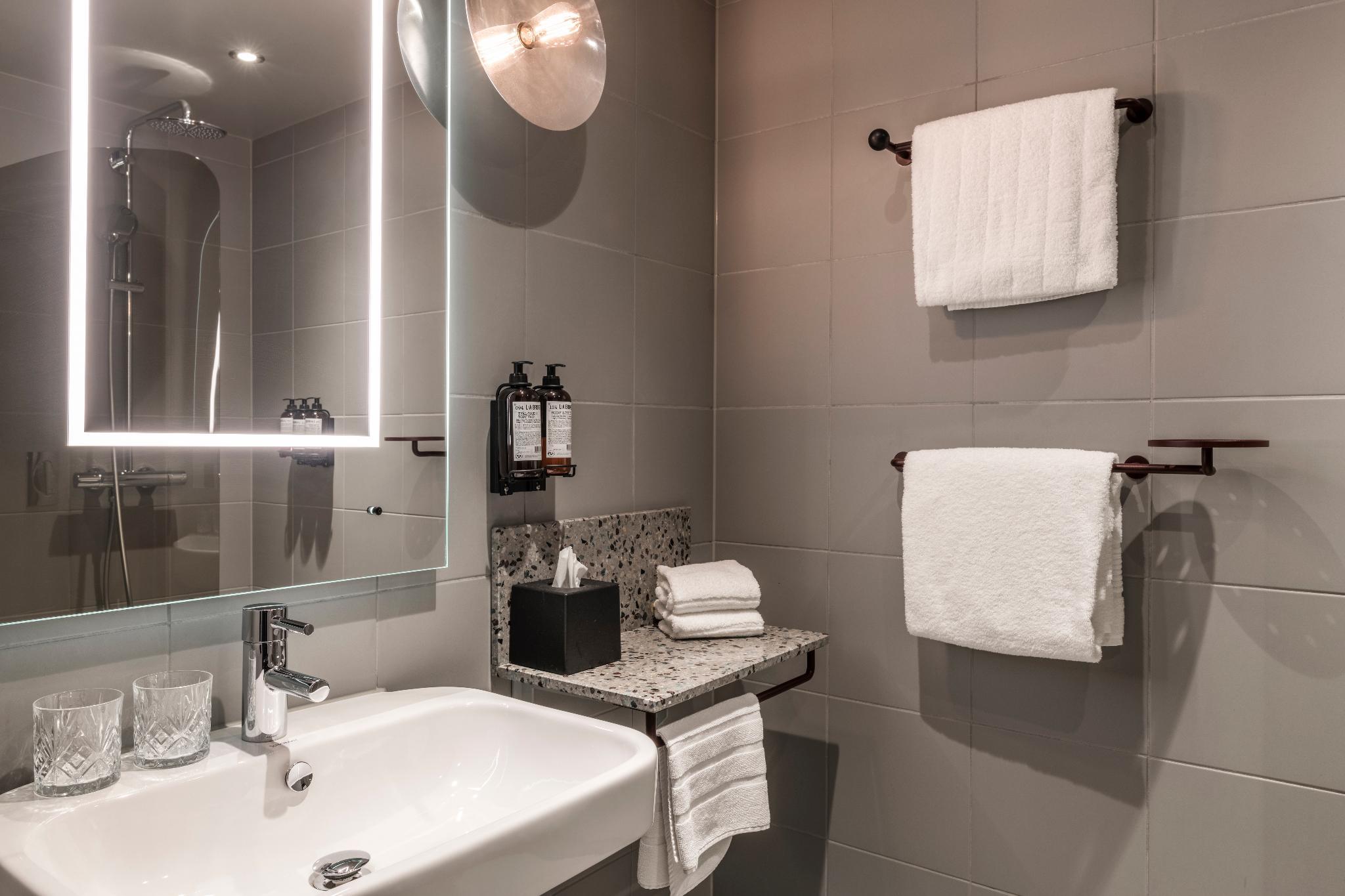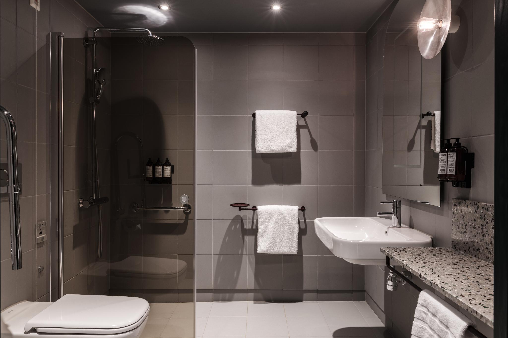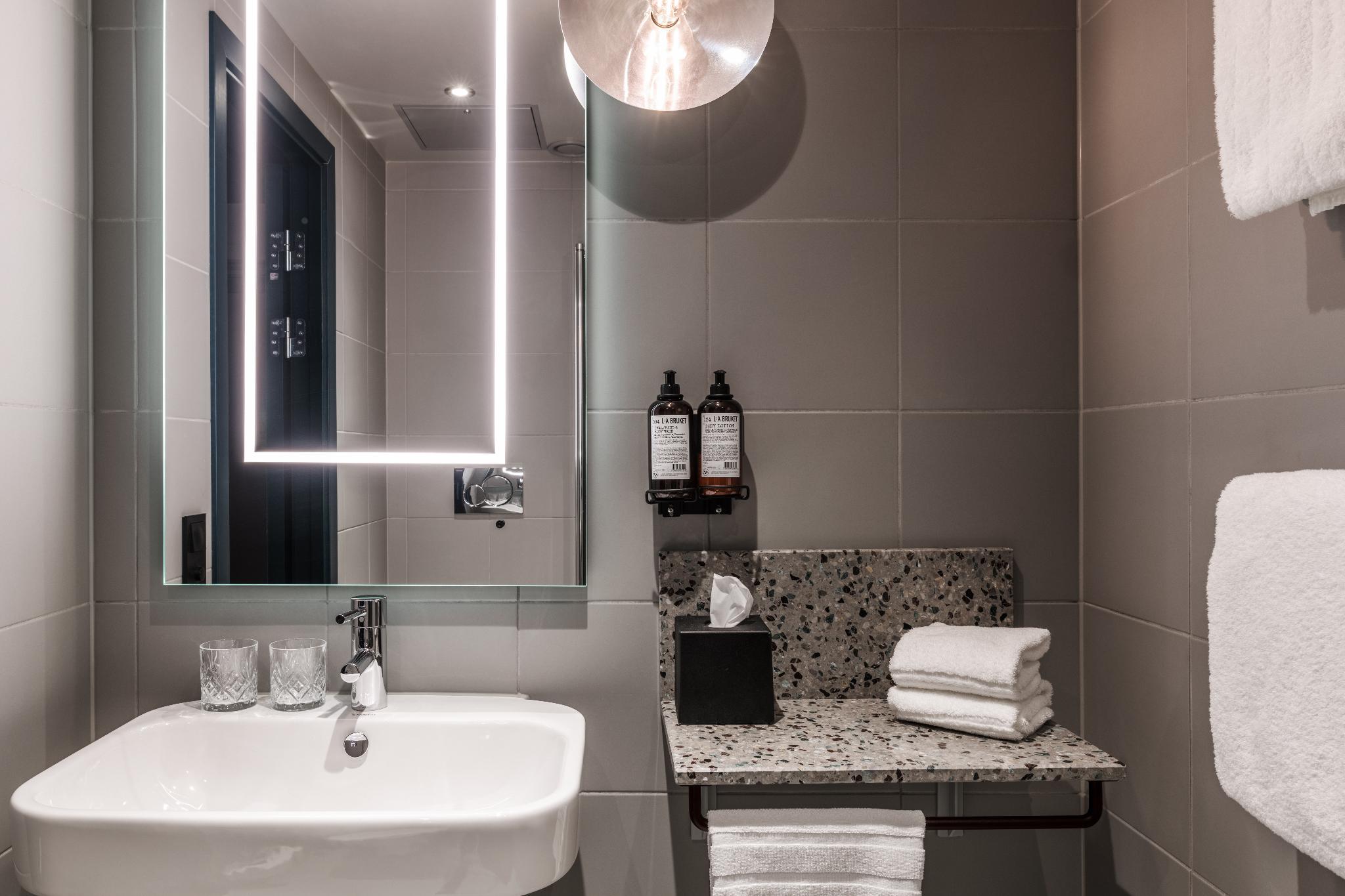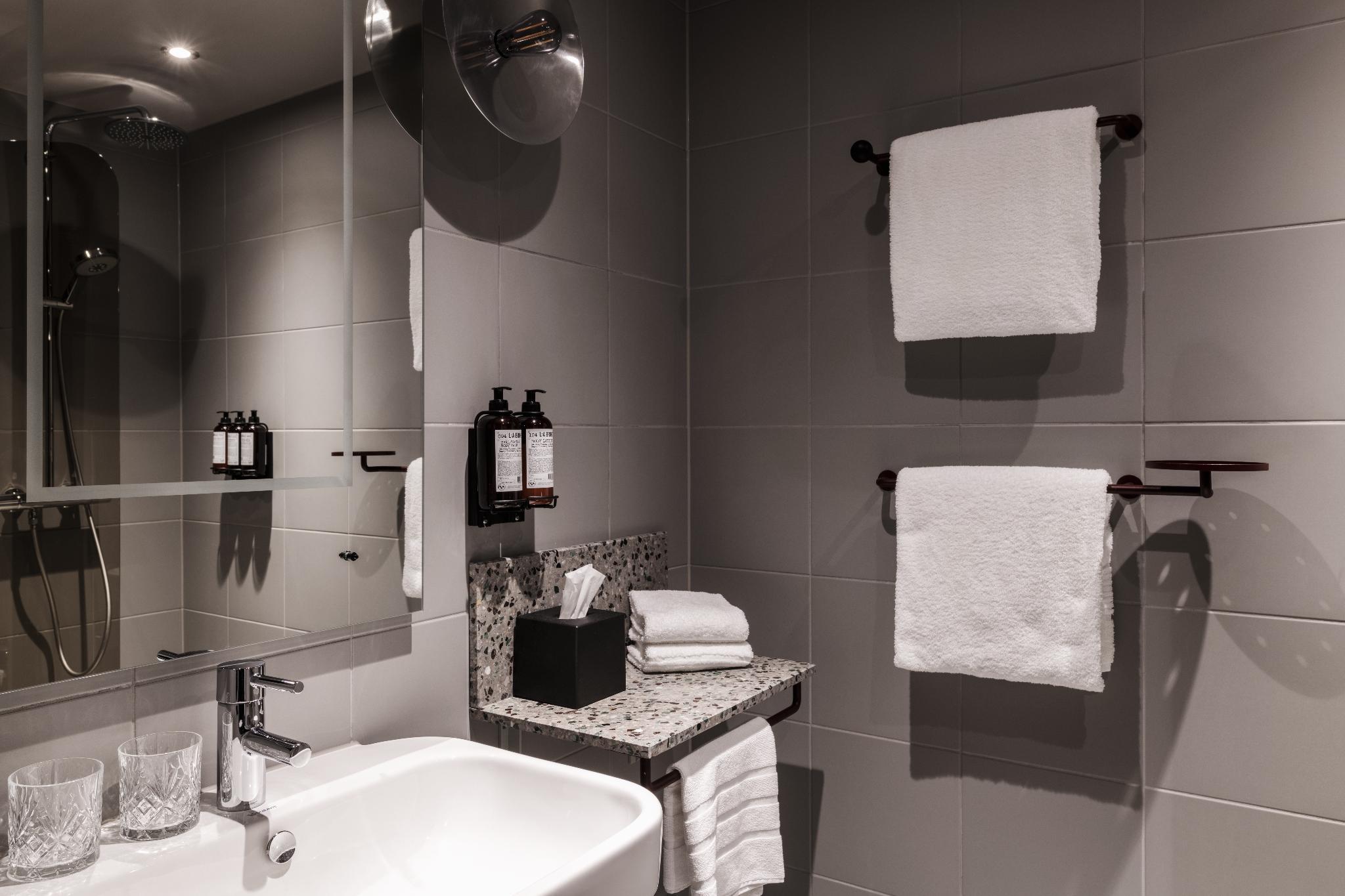 The 95 rooms are located on floor 10 - 13 all with a spectacular view over the ocean and/or the City skyline. All rooms have a 48-55'' LED TV with Apple TV, premium quality beds and ecological bed linens. All rooms are equipped with a safe that fits laptops, a fridge with complimentary water from Vitamin Well. The bath rooms all has rain showers and generous sized amenities from the Swedish designer brand L:A Bruket.