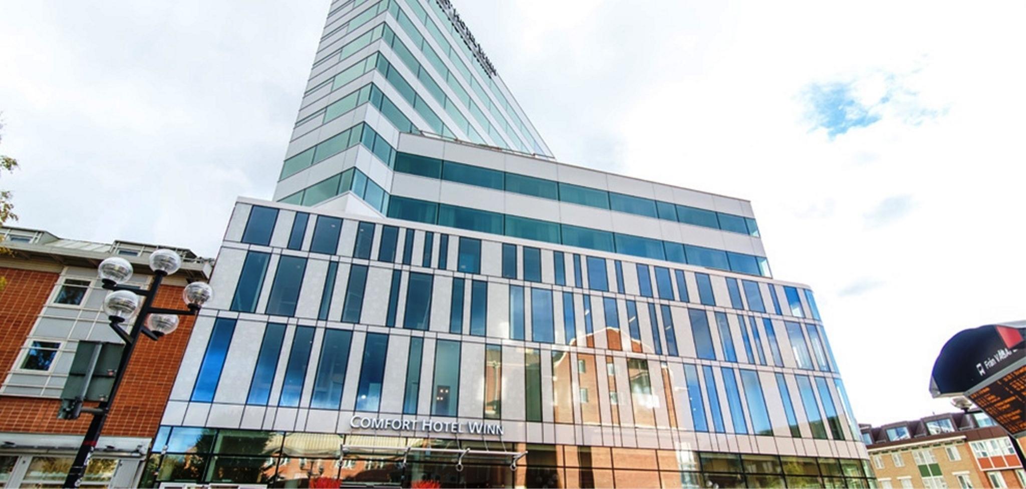 Welcome to the new Comfort Hotel Winn! The Comfort Hotel Winn is a modern and effective hotel with all the warmth of a small establishment, in the heart of Umea. The hotel is located on top of the brand new Shopping Center Utopia, in the heart of Umea City. Within the hotel, you can find a 24 hour open Front Desk and Lobby Shop. We have a 24 front desk, free newspaper, and a warm garage. Our guest rooms feature cable television, free wireless Internet and free coffee available all day.