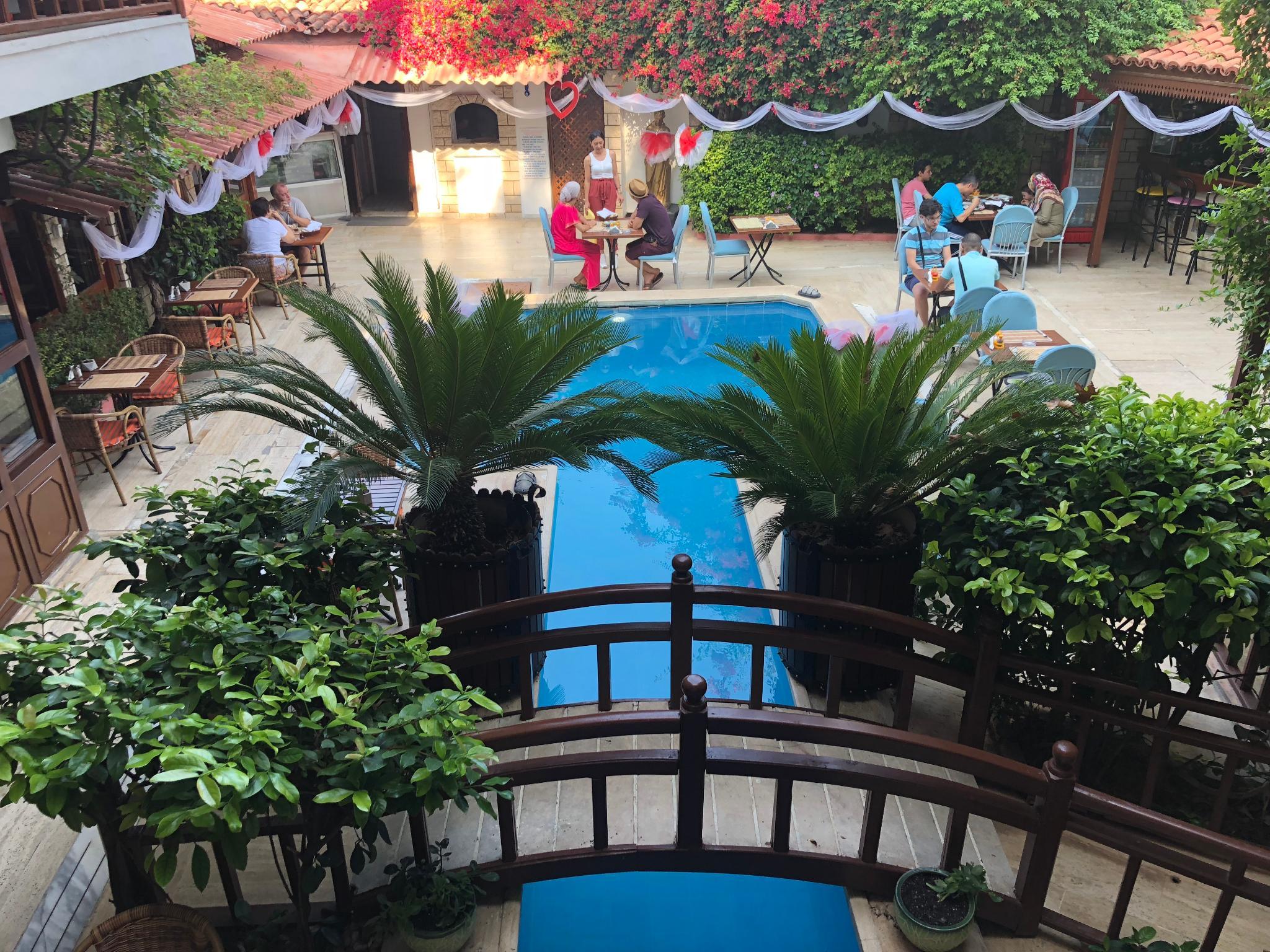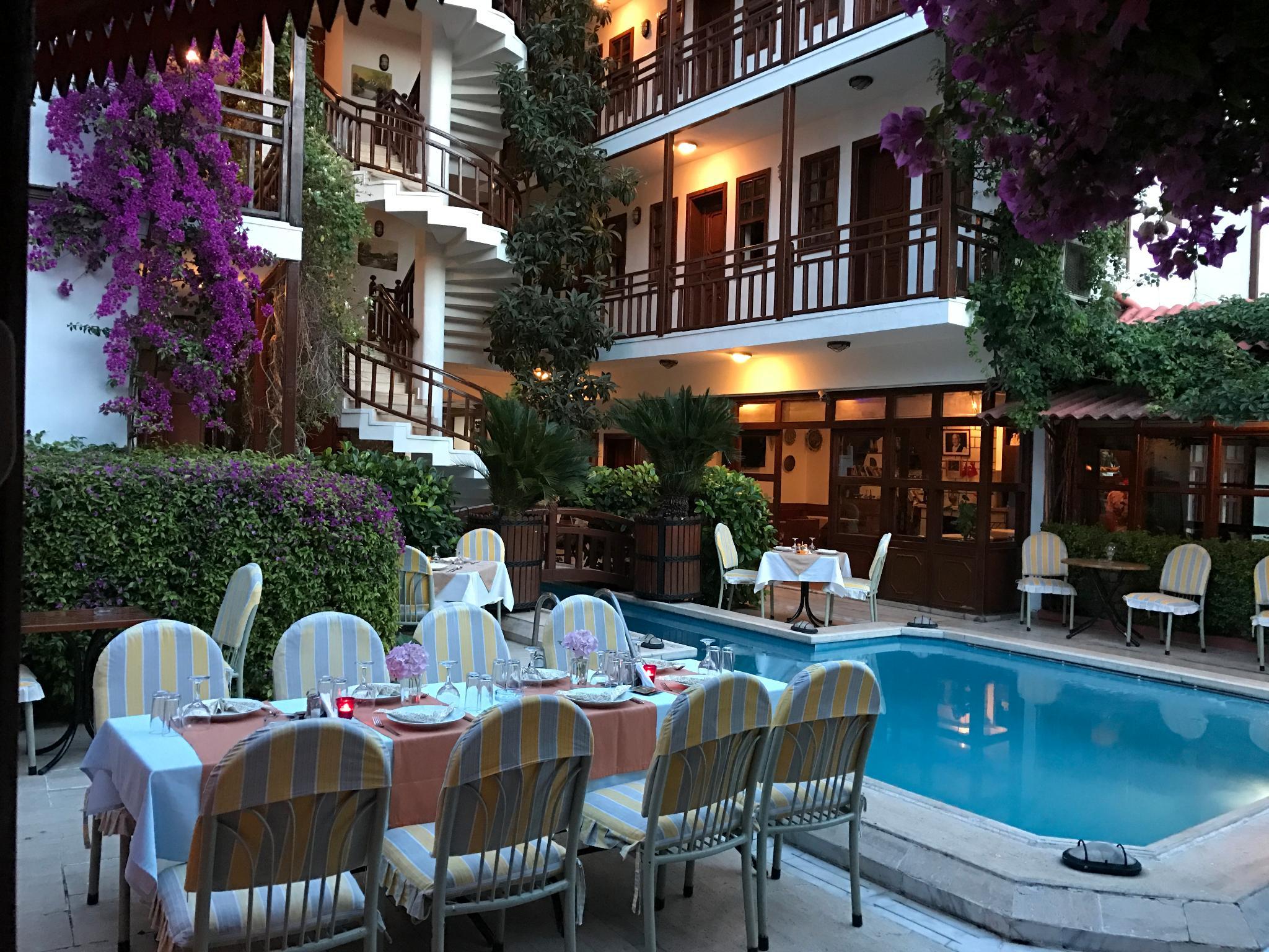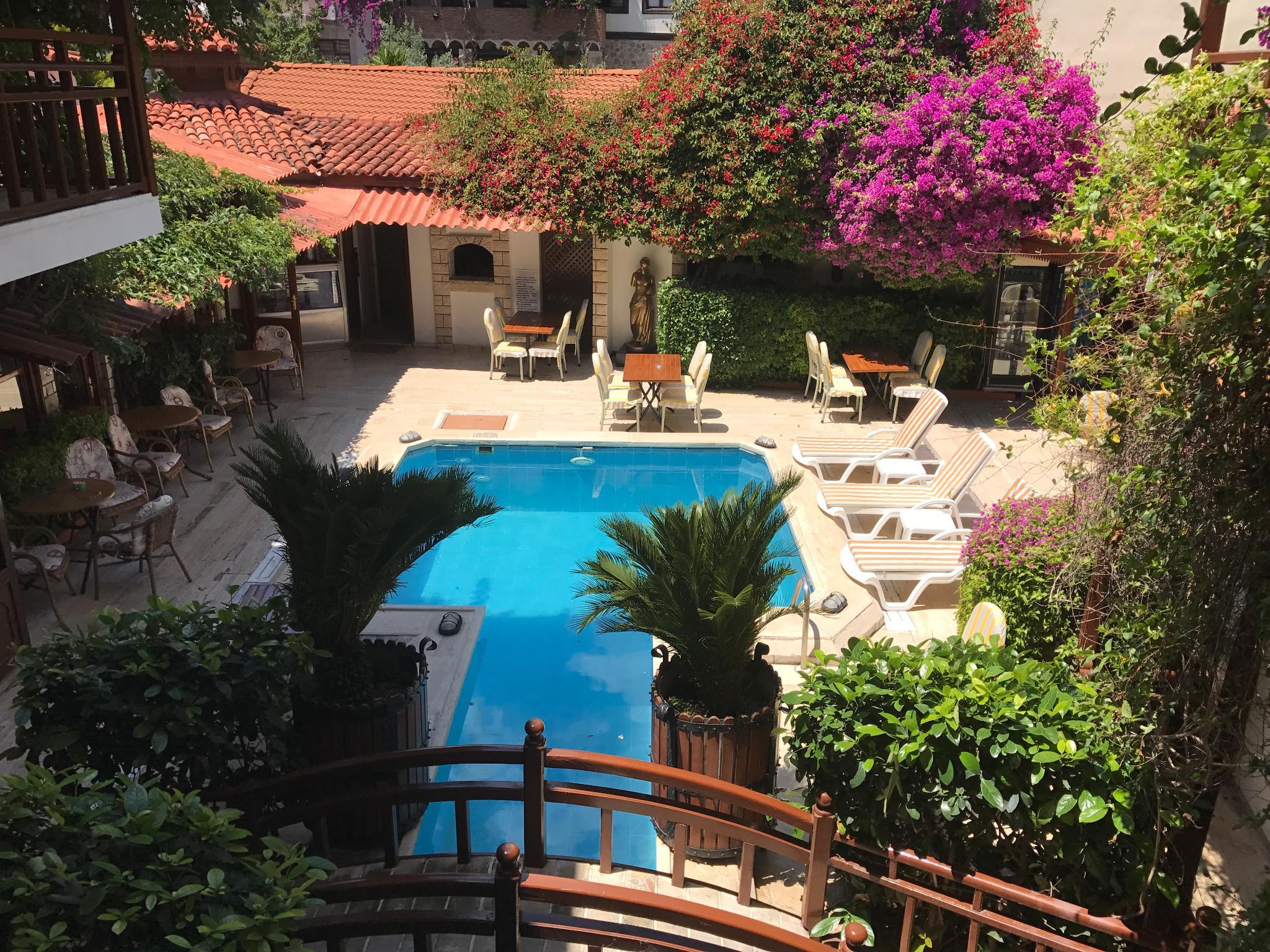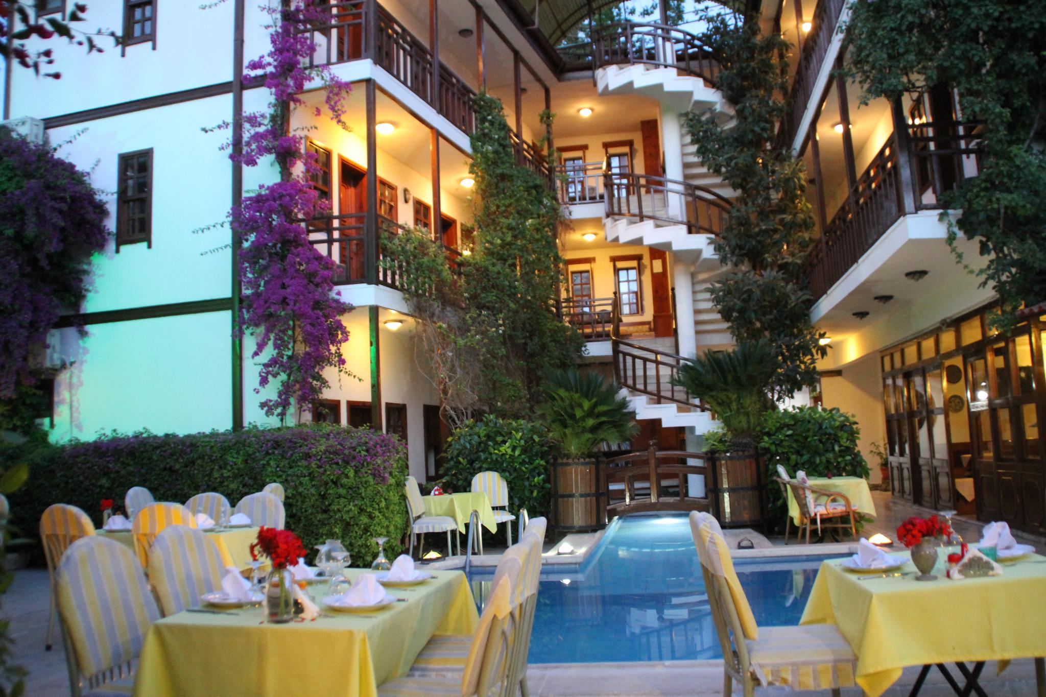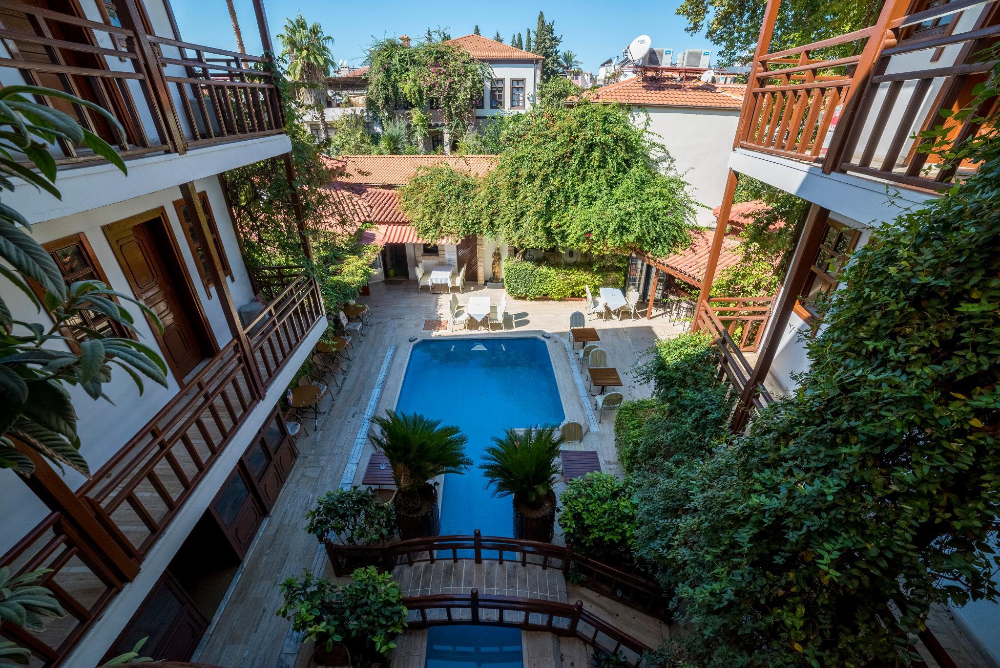 Отель расположен в старом городе Калеичи, в нескольких минутах ходьбы от гавани. Центр Анталии, с его ресторанами, барами, остановками общественного транспорта и торговыми центрами находится всего в 150 метрах от отеля, галечный пляж – примерно в 200 метрах от отеля, городской парк – в 50 метрах, а расстояние до аэропорта примерно 15 км. Этот тихий, удобный городской отель был реконструирован в 2005 году и находится в окружении прекрасного сада. Отель включает в себя в общей сложности 30 номеров, из которых 3 приспособлены для людей с ограниченными физическими возможностями, на 3 этажах. К услугам гостей отеля – кафе, бар, а также ресторан, в котором подаются вкусные турецкие блюда. Также в отеле есть бассейн с детской зоной и снэк-бар у бассейна. Для развлечения гостей предлагаются специальные " турецкие ночи ", со шведским столом и живой музыкой.