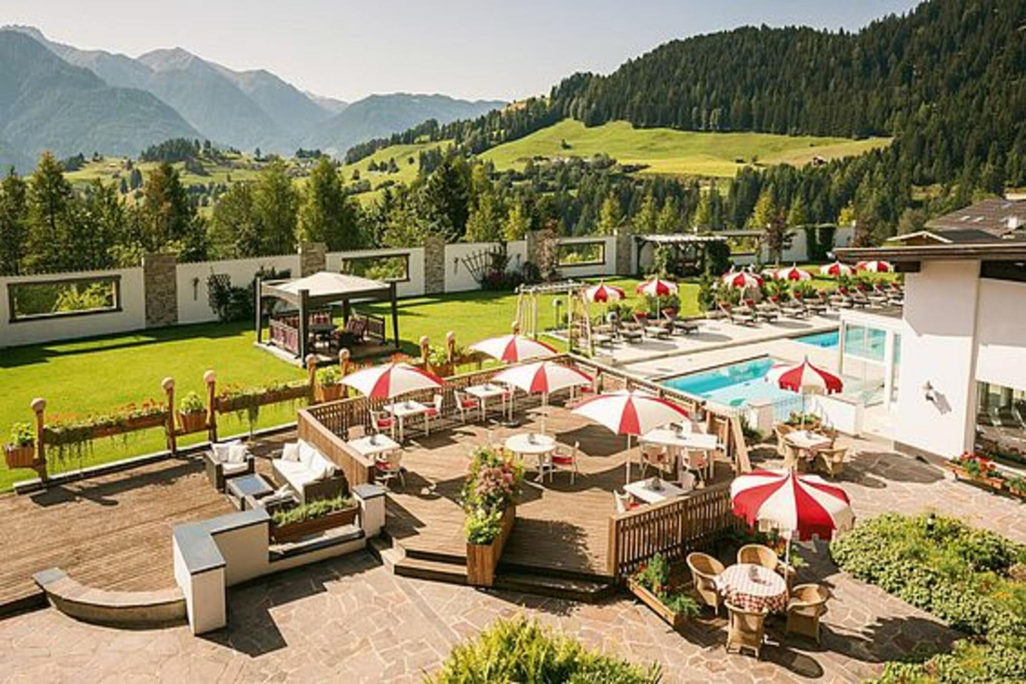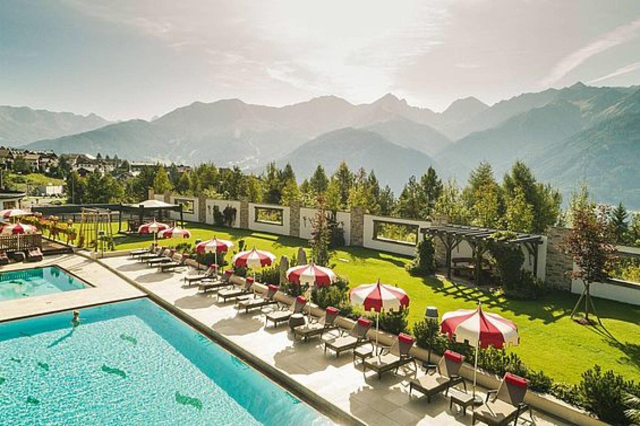 When taking a vacation at our family-run 4-star hotel in Fiss with incredible views of the Tyrolean mountain landscape, you will sense the wonderful feeling of freedom and ease. Experience the impressive nature of the Tyrolean Oberland and enjoy the tranquility and calmness in the middle of the mountains far away from everyday life.Let yourself be enchanted by our indoor and outdoor swimming pools after a sporting day in fresh mountain air and sense the pleasant feeling of liveliness and balance after a visit to the spa area. In the evening, we will spoil you with culinary delicacies made from mostly regional products in our restaurants and parlors.We are looking forward to being your hosts in our hotel in Fiss and to make your holiday in Tyrol an unforgettable one.