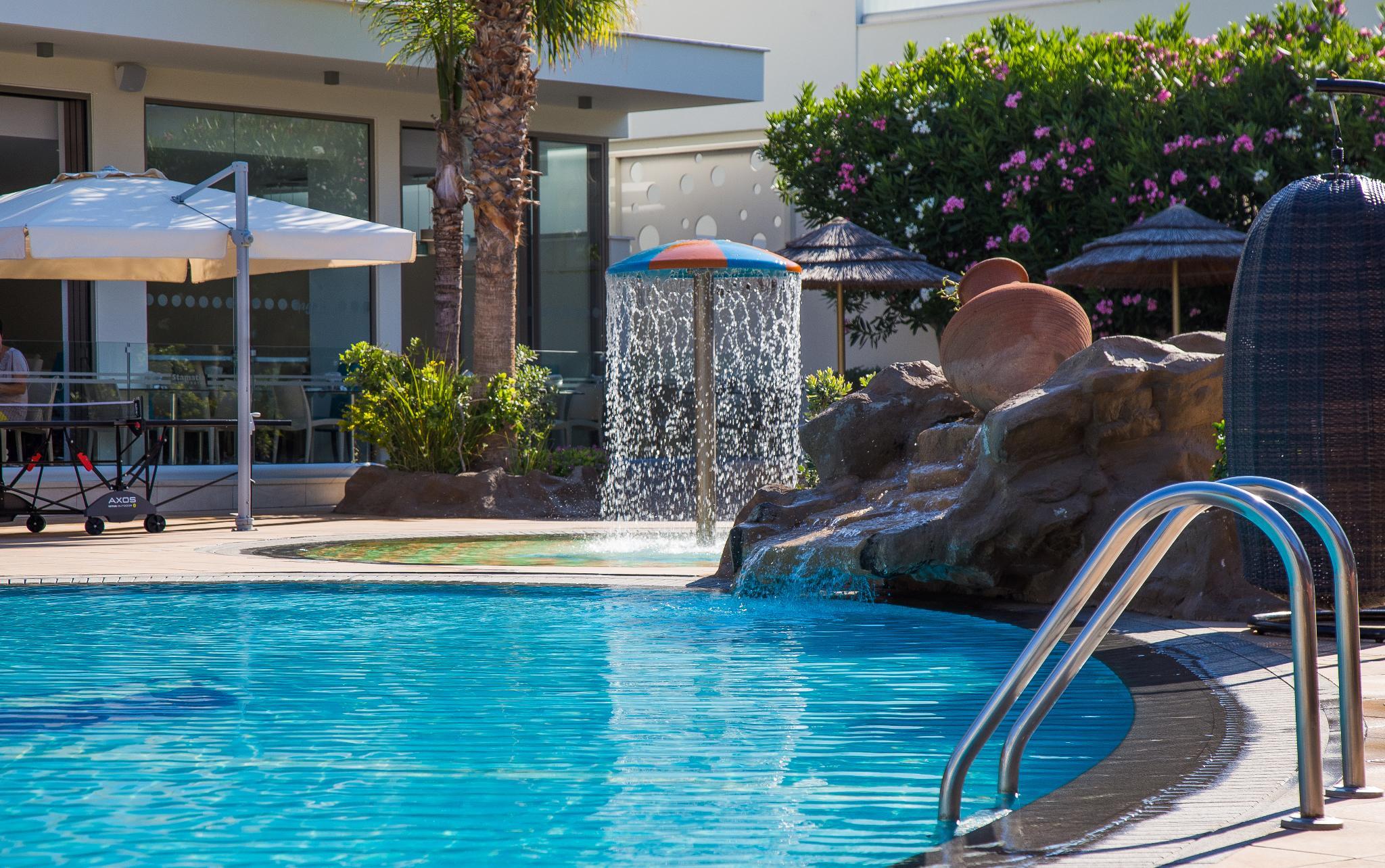 This hotel enjoys a prime setting in Ayia Napa, lying just 100 metres away from the fun park and the beach. This exciting setting affords guests close proximity to a host of attractions. The hotel is situated just 120 metres away from Ayia Napa's fishing harbour, where guests will find a number of restaurants and taverns. This charming hotel comprises tastefully-designed guest rooms. The hotel features a number of excellent facilities and services, ensuring comfort and style. The hotel features a delightful restaurant, which offers Mediterranean and international dishes, which are prepared with local ingredients. The bar offers a relaxed setting in which to sit back with a refreshing drink.