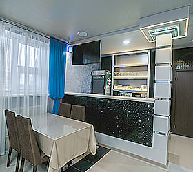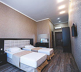 Guests are welcome to choose from 20 rooms of various categories. All the rooms have 24h service, climate control system, LCD TV with the 2nd multiplex programs, WI-FI, safe, fridge, spacious bathroom with a shower cubicle, hair dryer, towel dryer. There is mini-bar, bathrobes and slippers in superior rooms.