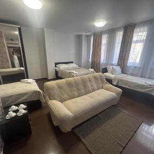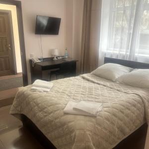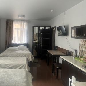Our rooms have a flat-screen TV, desk, chair, writing materials (on request), wardrobe, shoe cabinet, landline phone, laundry bag, hairdryer, water heater (in case of hot water disconnection), electric kettle, tea station, disposable slippers, hygiene supplies shower (dental kit, soap, gel, shampoo, cap), foot towel, towel set, fresh bed linen, clothes hangers, shoe sponge, sewing kit, shoe spoon, disposable slippers, charging for any phone (on request), heater (on request), dishes (on request), TV, WI-FI, bedside tables, bedside lamps (on request), some rooms have mini-refrigerators (No. 8 (standard 2nd floor), No. 7 (standard 2nd floor), No. 10 (family 2nd floor), No. 12 (family 2nd floor), No. 11 (family with kitchen 2nd floor), No. 18 (family with kitchen 3rd floor), air conditioners and even sofas and armchairs (No. 12 (family 2nd floor), No. 19 (family 3rd floor)).