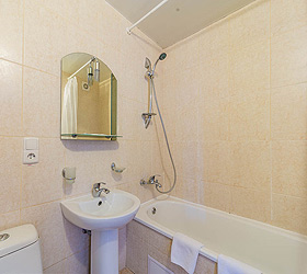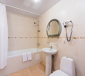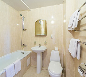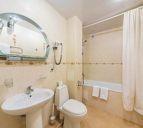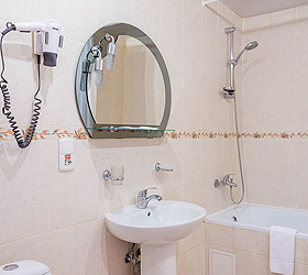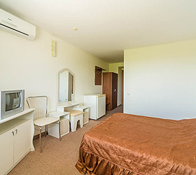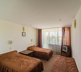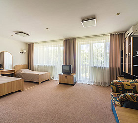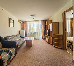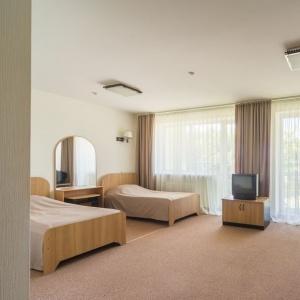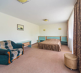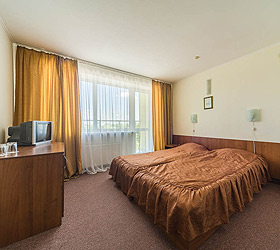 Accommodation is available in 87 comfortable rooms of Junior Suite, Double Business, and Single categories, featuring everything needed for rest and pleasant stay. Each room has a comfortable bed, TV, fridge, and private bathroom. Junior Suites are also fitted with air conditioners.