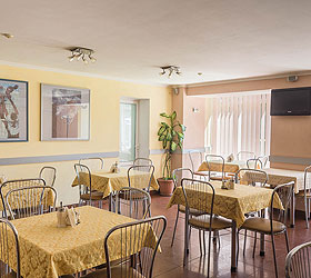 All guests are served breakfast in the morning. The hotel restaurant is located on the first floor and seats 40 people. It serves dishes of European and Russian cuisines. Food and drinks can be delivered via room-service. Fixed breakfasts, lunches and dinners, as well as coffee breaks and business lunches, are available for participants of conferences. A summer terrace is open during the warm season.