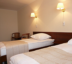 The hotel provides accommodation in 91 rooms of various categories - Economy, Standard and Studio. The rooms feature everything required for pleasant stay. The Standard room includes the following amenities - wardrobe, one double-bed or two separate beds, bedside tables, TV, telephone, two chairs, luggage space, cooking plate or microwave oven, fridge, tea-pot, bathroom with shower or bathtub, toiletry accessories, hair-dryer. Studios additionally offer - air conditioning, bar counter, in-room safe box, bathrobe. All rooms have key-card access system.